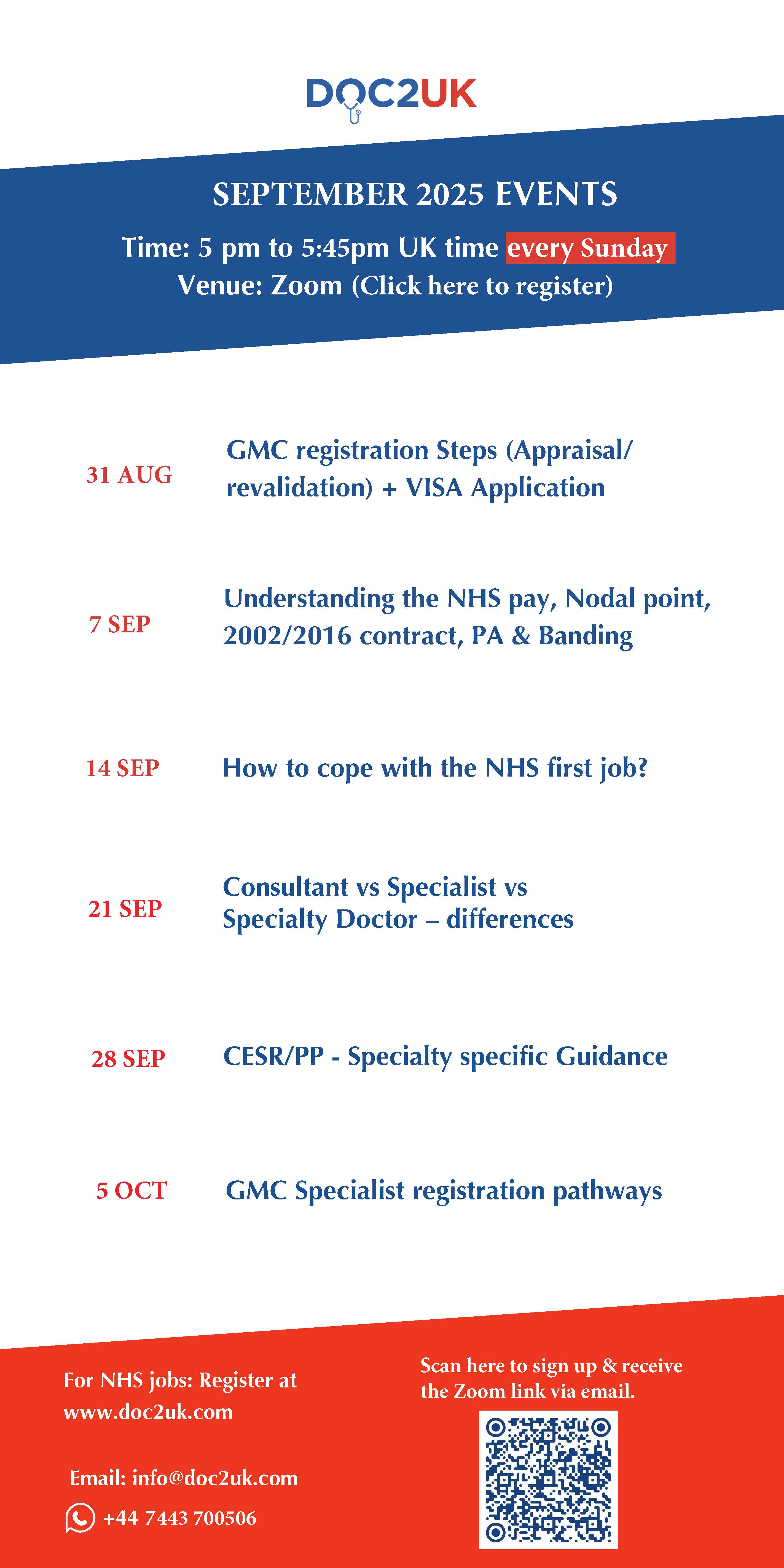 We conduct free Zoom events to support our IMG doctors. Feel free to register below and join them on every Friday/Sunday 5:00pm UK time.You will receive a joining link by email after registration.
